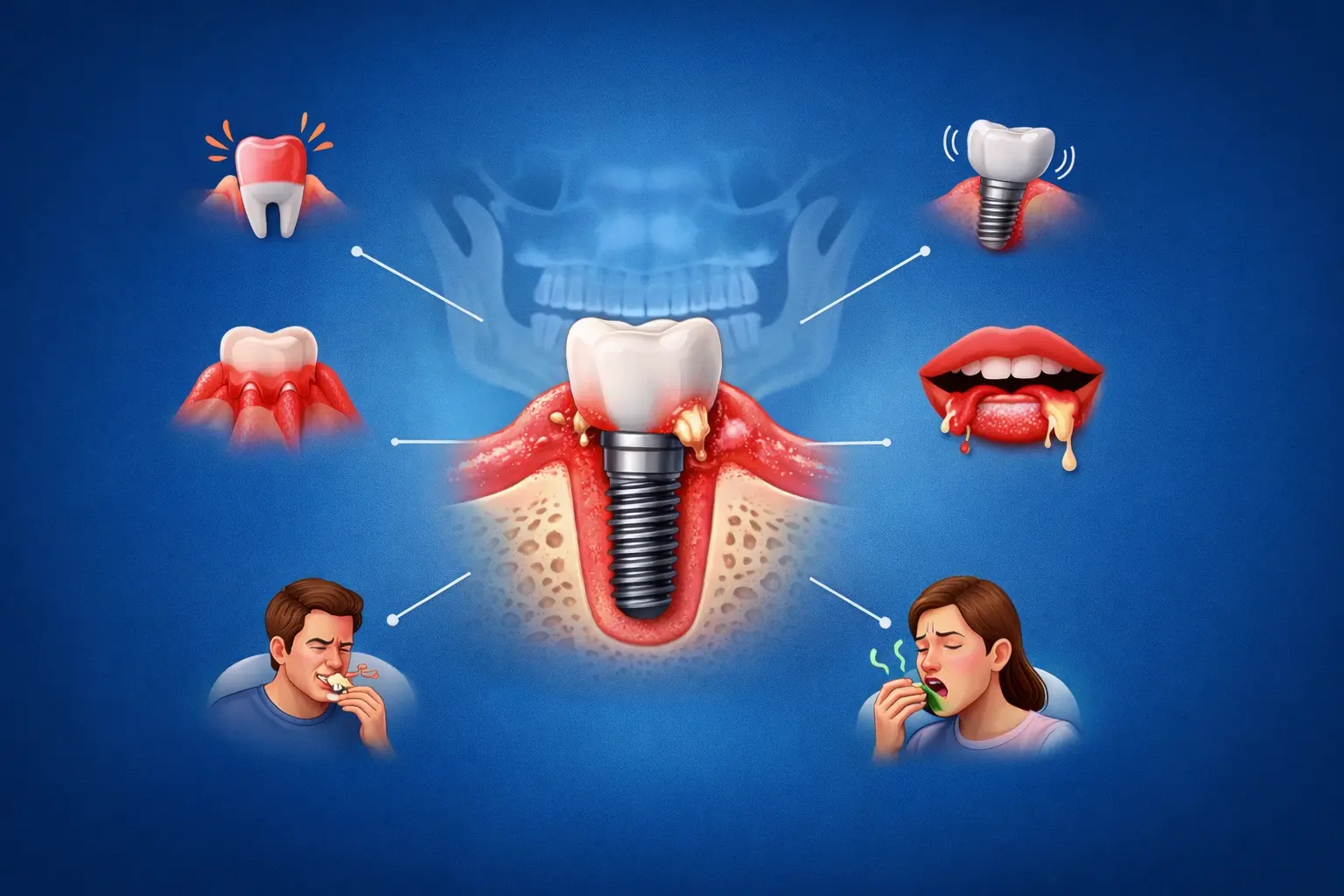 - Ağız kokusu ve kötü tat: Sebebi açıklanamayan ağız kokusu ve tat değişiklikleri implant çevresinde enfeksiyon geliştiğini gösterebilir.